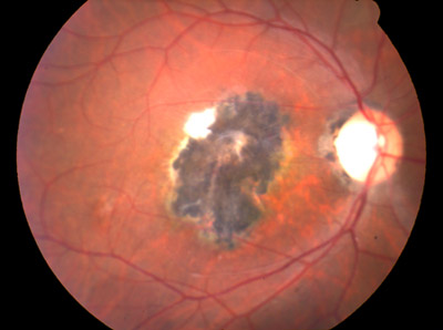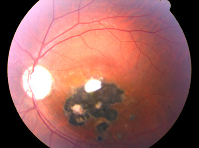 El síntoma más importante es el de visión borrosa debido a la opacidad del medio (debris en el vítreo), aunque la visión también puede estar limitada si la lesión afecta a las áreas vitales de la retina (mácula o nervio óptico).